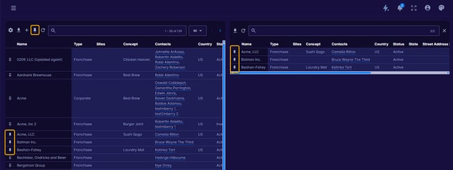 Searching for companies and pinning them in bulk using the pin icon next to the search bar