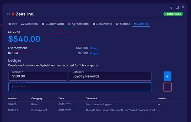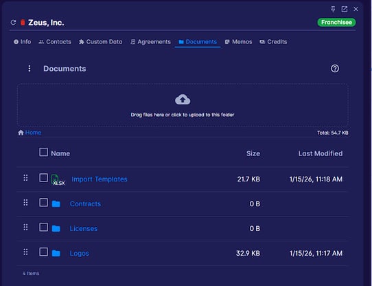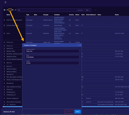 The Companies page in NEXT is your central hub for creating, managing, and tracking company records—such as franchisees, landlords, vendors, or internal entities.