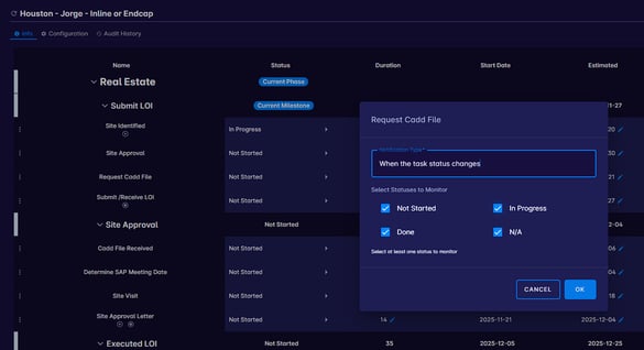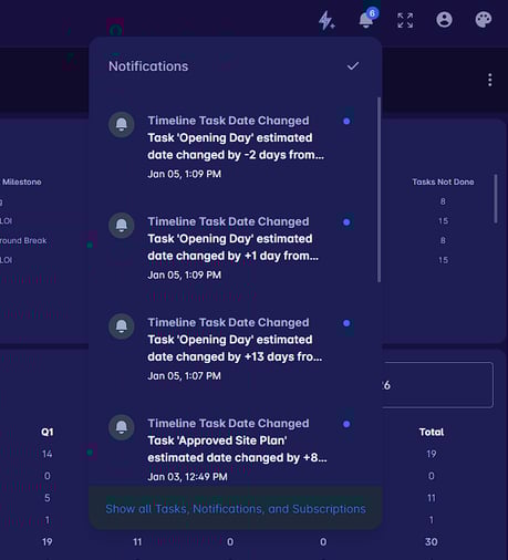 Notifications and Subscriptions help you stay informed about changes happening across your sites, timelines, tasks, and agreements—whether you’re automatically assigned or choose to opt in.
