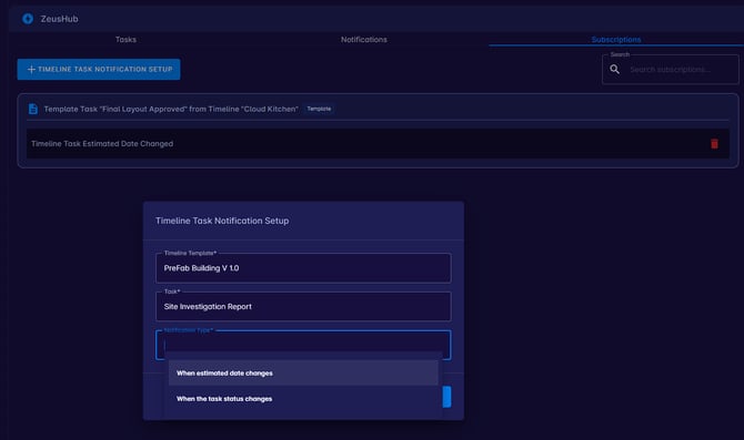 This link takes you to the ZeusHub, where deeper notification and subscription management lives.