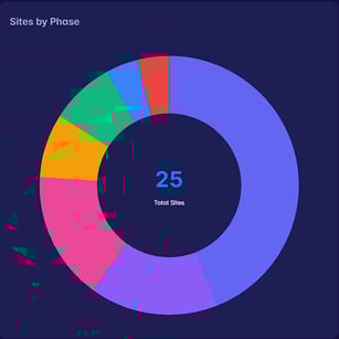 The Sites by Phase widget shows where sites are currently positioned within their timelines, displayed as either a donut style or bar chart.